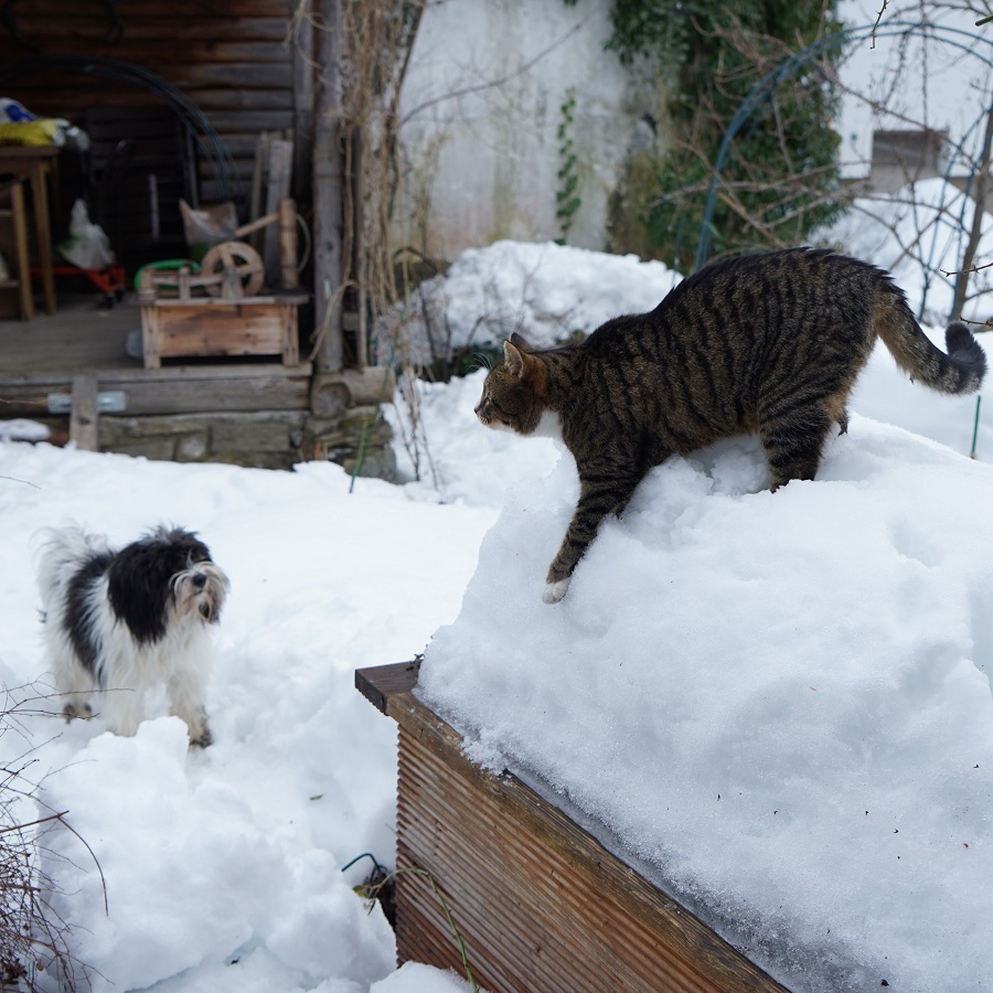 Hund und Katze: Frühlingsahnen und Neuschnee