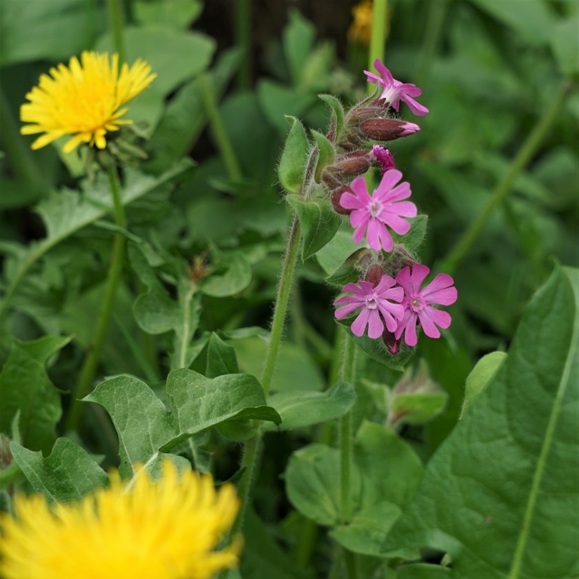 Rote Lichtnelke mit Löwenzahn