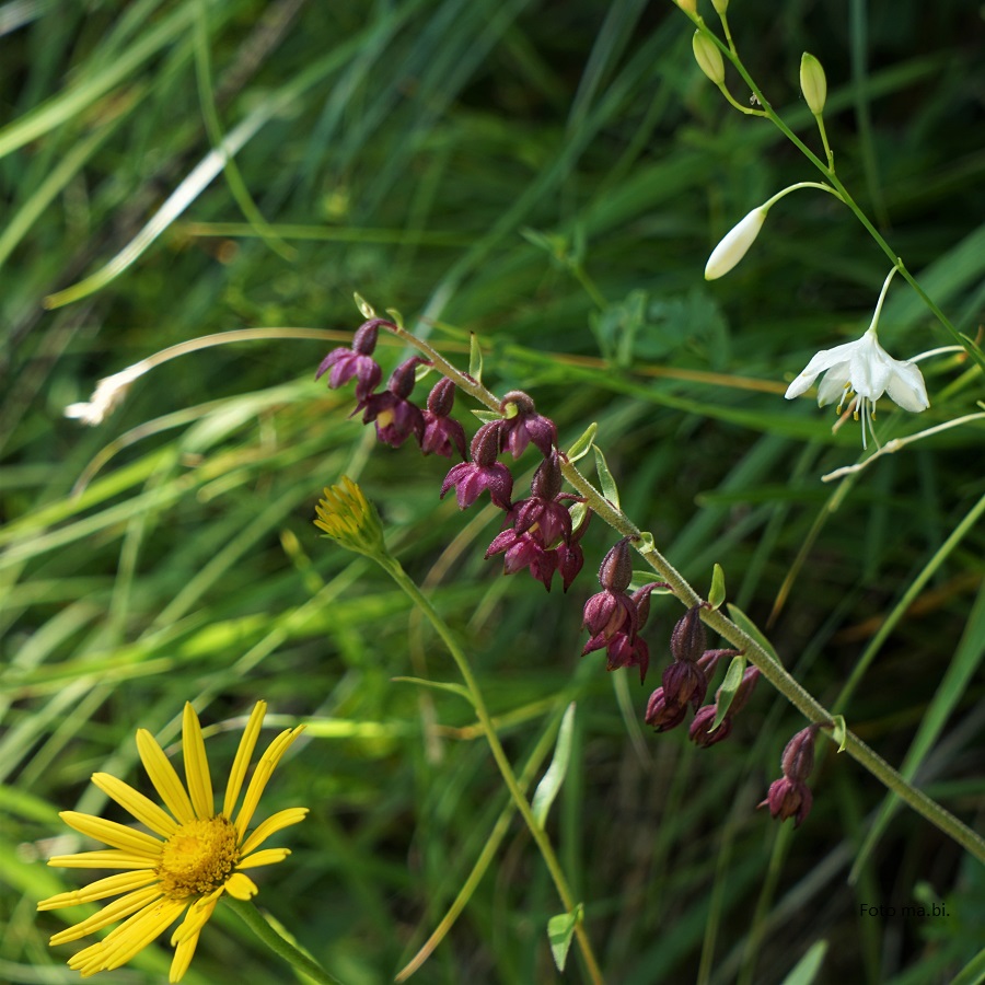 Vorheriges Bild DSC06998 Epipactis atrorubens, Anthericum ramosum, Buphtalmum slicifolius Braunrote Stendelwurz (Epipactis atrorubens)