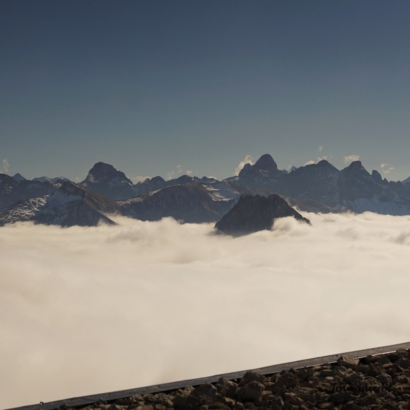 Also Sonne über dem Nebelmeer, aus dem nur die hohen Gipfel ragen. Kürzlich auf dem Nebelhorn war nur der Gipfel frei. Im Herbst freue ich mich über jedes letzte Blümchen, das sich noch blicken lässt.