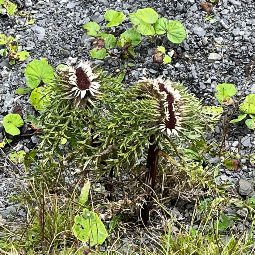 Und gelegentlich sind Besonderheiten zu entdecken wie die verwachsenen Blüten der Silberdistel (Carlina acaulis) und die weiße bärtige Glockenblume (Campanula barbata).