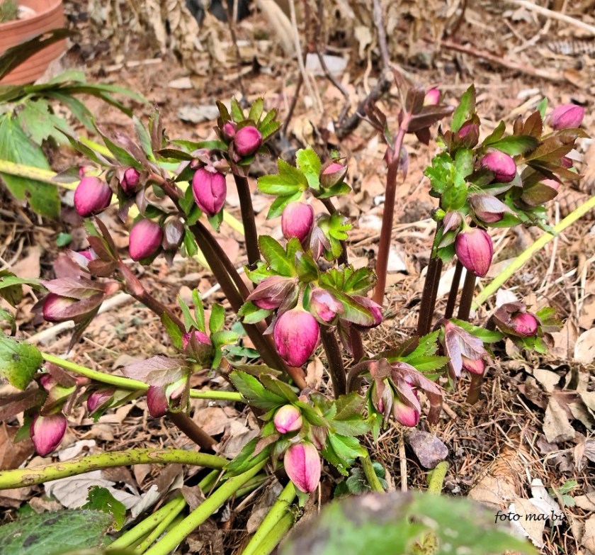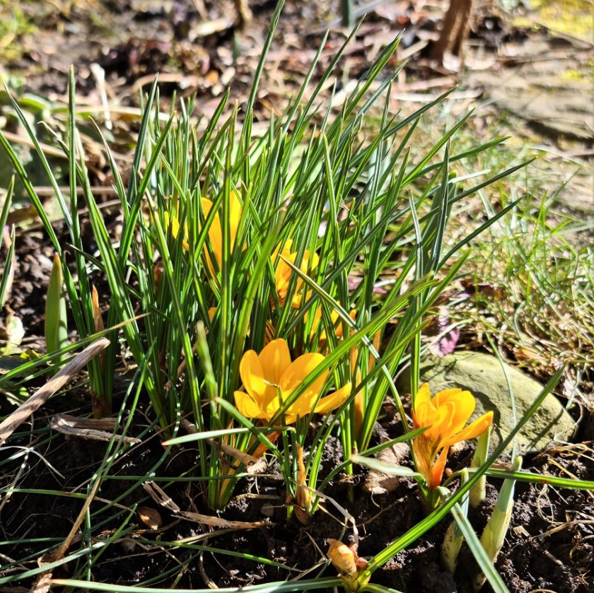 Auch im Garten zeigen sich von einem Tag zum anderen gelbe Farbkleckse, die ersten Krokusse. Und die Lenzrosen haben schon dicke Knospen. Ob sie noch vor dem nächsten Schneefall blühen?