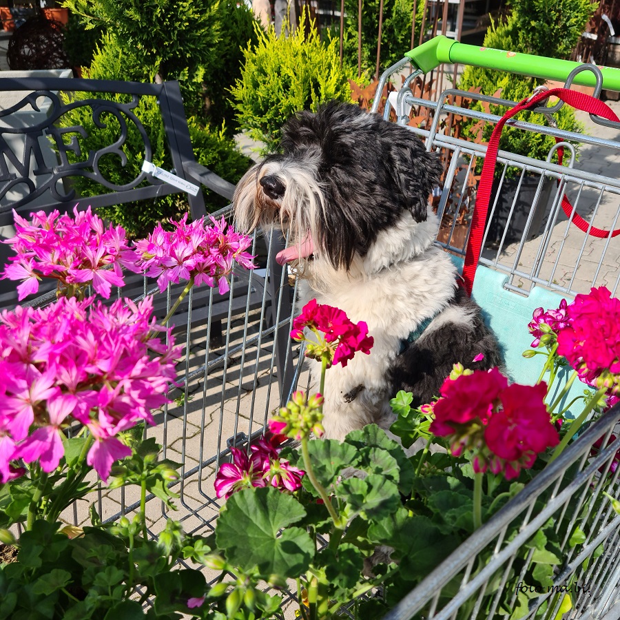 Blumen-Einkauf mit Hund: Airy findet das zum Gähnen!