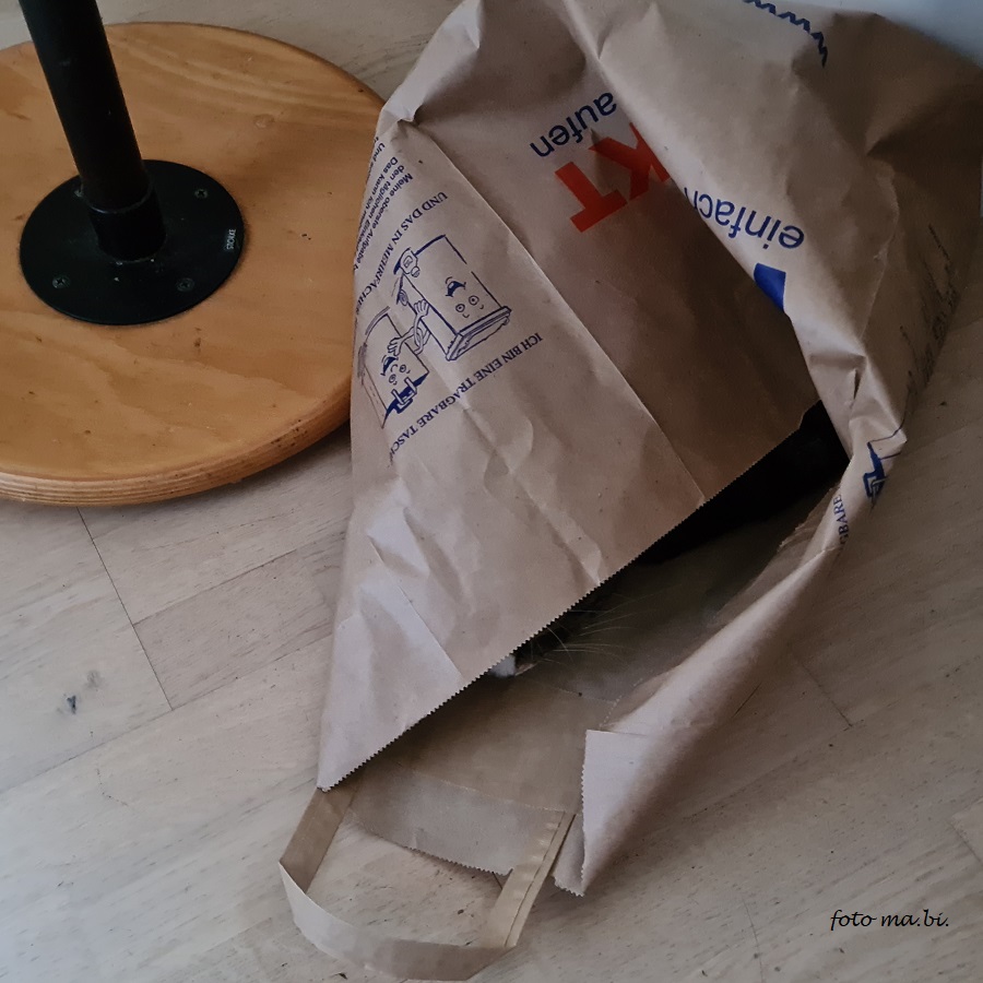 Maya im Hundebett, Hund auf dem harten Fußboden, die Hierarchie unter den Vierbeinern ist klar. (Dank Fußbodenheizung muss Airy wenigstens nicht frieren.) Katze Maya liebt noch einen anderen Schlafplatz: wenn sie sich im Bett breit macht, muss Frauchen sehen, wo sie bleibt – und welchen Teil der Decke sie beanspruchen darf. 14. 01. 2024