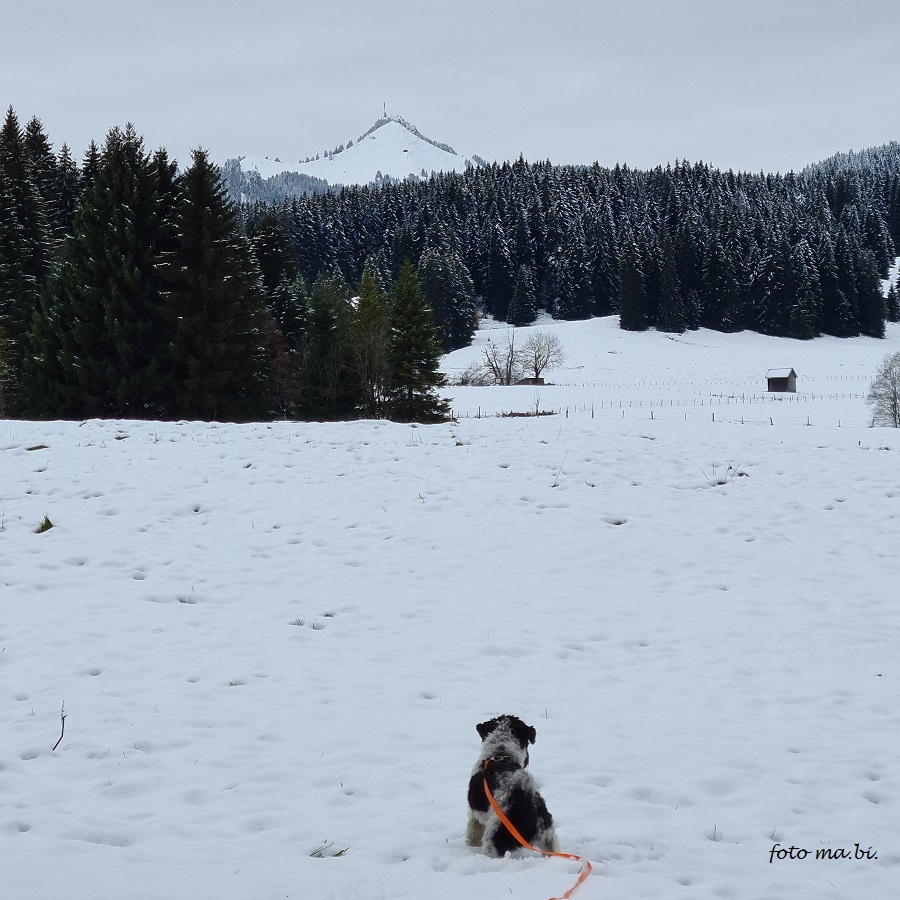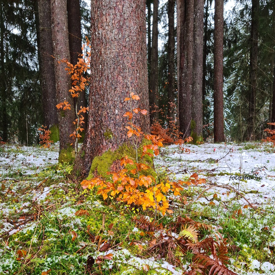 Airy genießt den Schnee, ich mag den Kontrast der kräftigen Herbstfarben mit dem ruhigen Weiß. 18. 11. 2023