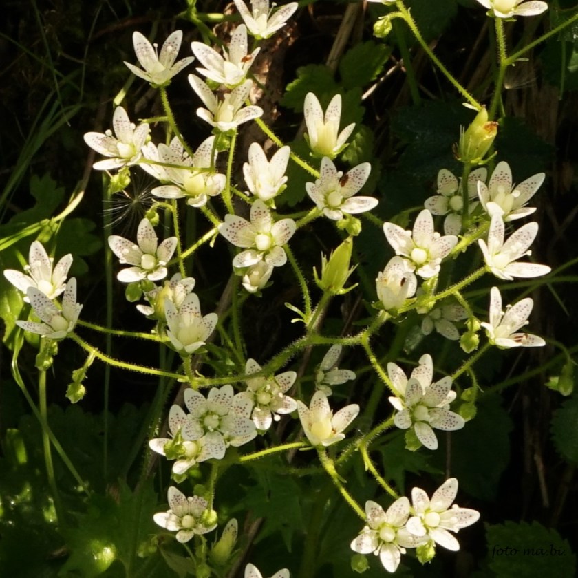 Für botanisch interessierte Bergwanderer ist jetzt die schönste Jahreszeit. Überall gibt es kleine Kostbarkeiten zu entdecken. In den Blüten des Rundblättrigen Steinbrechs (Saxifraga rotundifolia) erkennt man bei genauem Hinsehen ein apartes Punktmuster.