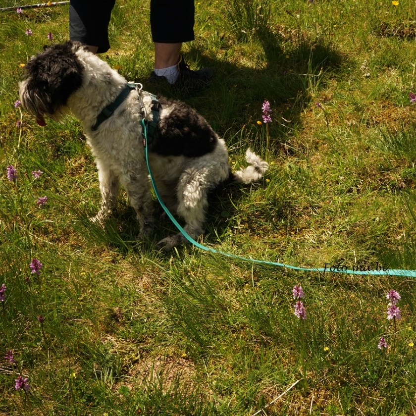 Hund Airy erwies sich mal wieder als echter Orchideenhund: er setzte sich zwischen die Orchideen und nicht darauf.