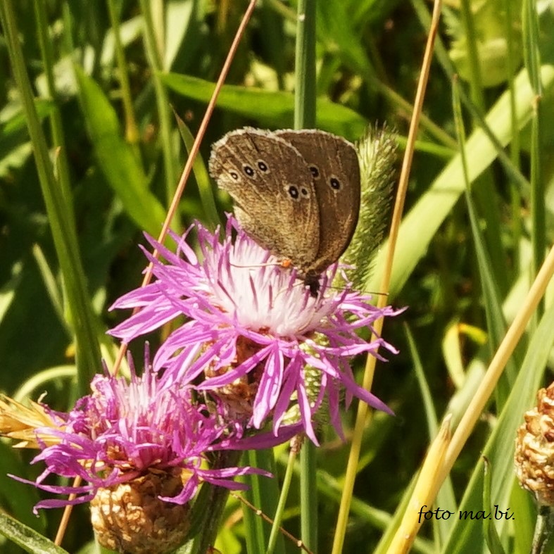 Brauner Waldvogel (Aphantopus hyperantus) auf Wiesen-Flockenblume