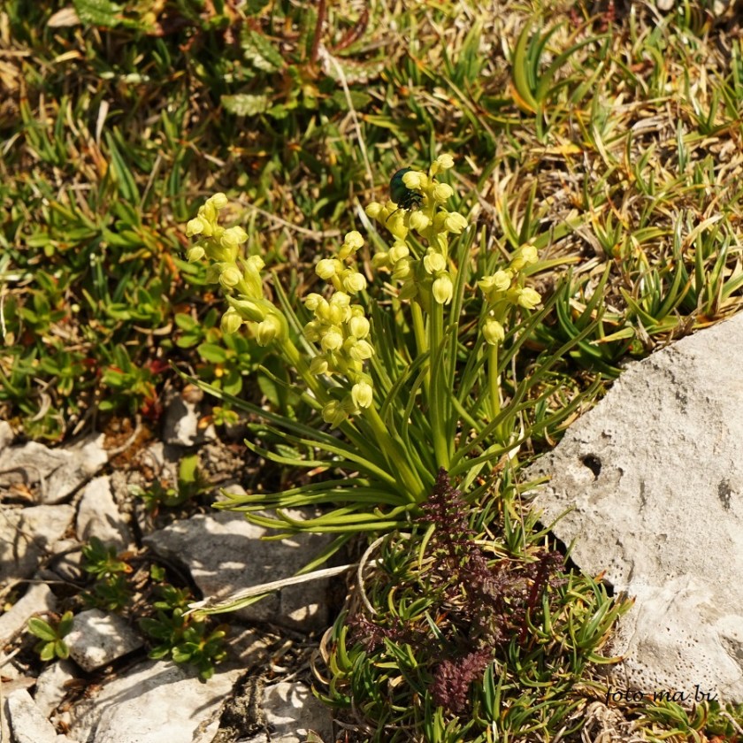 die Mücken-Händelwurz (Gymnadenia conopsea), die Höswurz (auch Weißzüngel genannt, Pseudorchis albida). Und dazwischen jede Menge Exemplare, die in Farbe und Form abweichen: