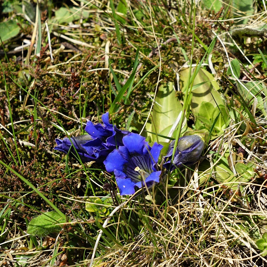 Im Allgäu bewegen wir uns vorwiegend im Kalkgebiet, aber Flyschberge wie das Fellhorn zeigen uns kalkmeidende Pflanzen wie die Rostrote Alpenrose (Rhododendron ferrugineum) mit ihren rostfarbenen Blattunterseiten oder den Stängellosen Enzian (Gentiana acaulis = kochiana), der sich durch die olivgrünen Flecken im Kelch vom kalkliebenden Clusius-Enzian unterscheidet.