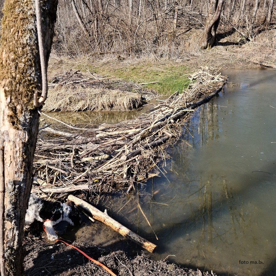 Zerstörerisch und bewundernswert zugleich ist auch den Biber am Werk, selbst am kleinsten Wiesenbach, der im Sommer kaum Wasser führt. Wo der Schnee fehlt, leuchtet das Weiß der Birkenstämme. 10. 01. 2023