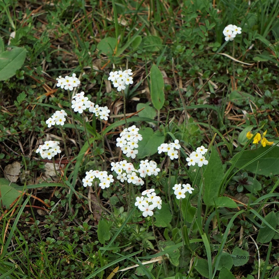 Und das bleibt nicht der einzige Höhepunkt: winzig, aber wunderschön lacht uns der Bewimperte Mannsschild (Androsace chamaejasme) an. Die Blattrosette zeigt, woher der Name kommt.