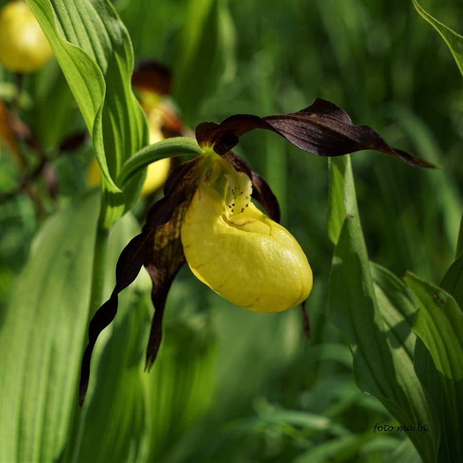 Unsere größte heimische Orchidee, der Frauenschuh, Cypripedium calceolus, blüht auf Allgäuer Bergen.