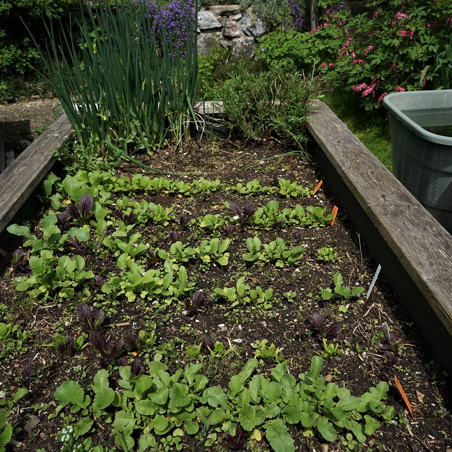 Auch in den Hochbeeten fülle ich Erde und Kompost nach, aber für Aussaaten ist es noch zu früh. 07.03.2024