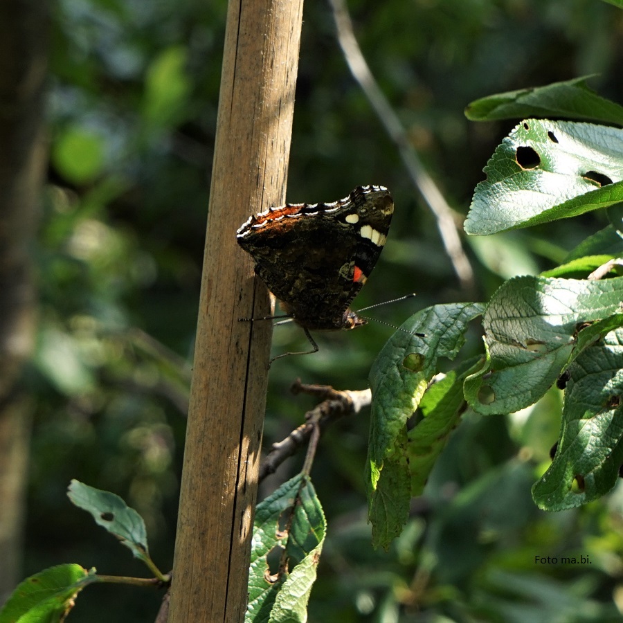 Ein wunderschöner Schmetterling umflattert zur Zeit meine Zwetschenbäume. Der Admiral versöhnt mich ein bisschen damit, dass die Zwetschgen teilweise schon am Baum von der Monilia-Fruchtfäule befallen sind, denn offenbar liebt der Schmetterling gerade diese fauligen Zwetschen. Jedenfalls konnte ich noch nie so viele dieser Falter im Garten beobachten.
