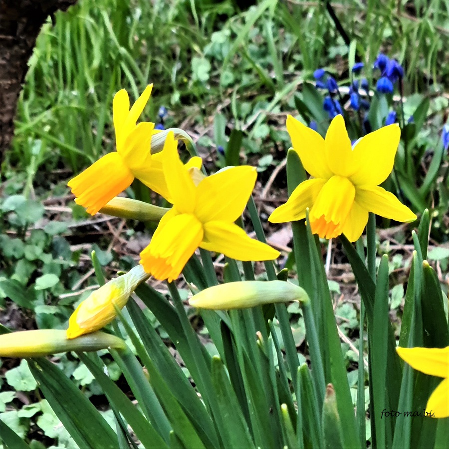 Die ersten kleinen Narzissen blühen, sie sind immer früher dran als ihre großen Geschwister, und ich habe einen winzigen Ehrenpreis entdeckt.