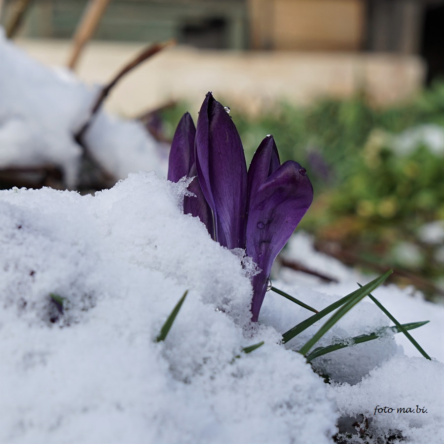 In den nächsten Tagen soll es wieder wärmer werden, aber nach dem extrem trockenen und warmen März war der Niederschlag im April dringend nötig. Erfahrungsgemäß schaden Schnee und Kälte den Frühjahrsblühern nicht, nur der letzte Krokus hat vorzeitig die Köpfe hängen gelassen.