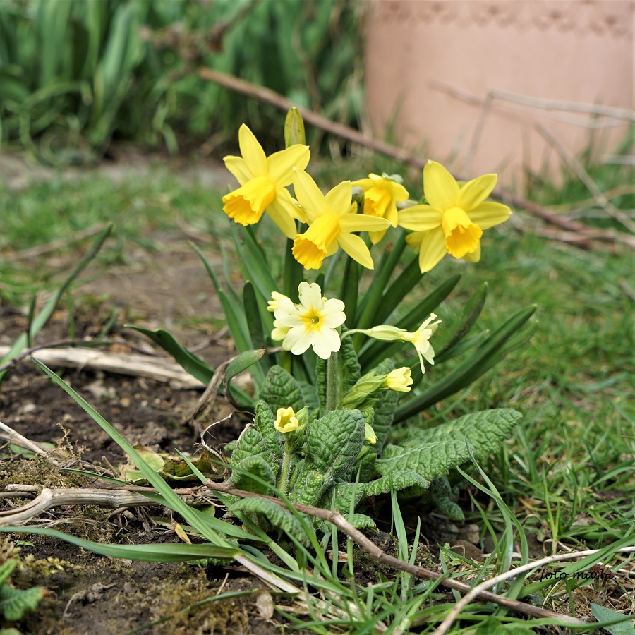 Und nächste Woche soll es wieder schneien. Aber der Frühling lässt sich nicht aufhalten. Die kleinblütigen Narzissen (Narcissus „Tete a Tete“) und die etwas größere Sorte mit den orangegelb angehauchten Kelchen (Narcissus „Jetfire“) blühen schon überall im Garten und erste Primeln öffnen ihre Blüten.
