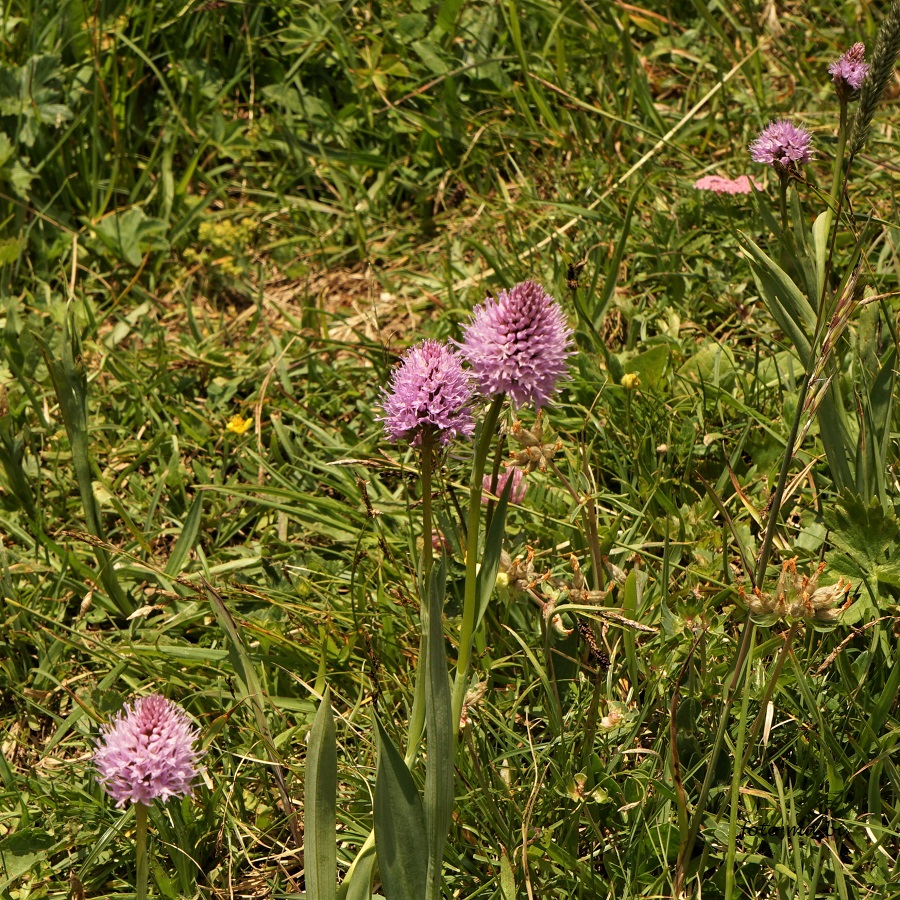die Mücken-Händelwurz (Gymnadenia conopsea), die Höswurz (auch Weißzüngel genannt, Pseudorchis albida). Und dazwischen jede Menge Exemplare, die in Farbe und Form abweichen: