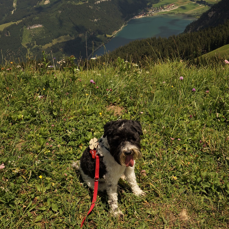 Hund Airy erwies sich mal wieder als echter Orchideenhund: er setzte sich zwischen die Orchideen und nicht darauf.