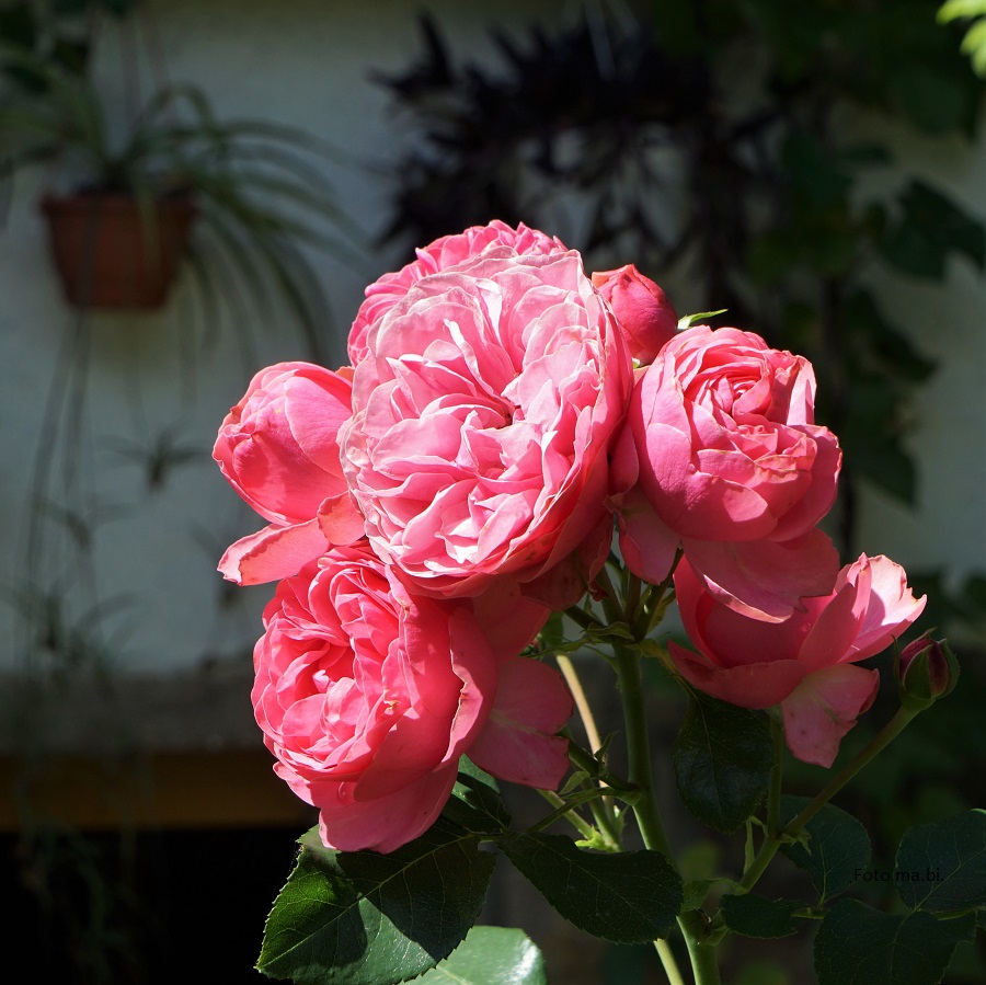 Die Rosen „Leonardo da Vinci“ und „Mariandl“ haben zur zweiten Blüte angesetzt, dazu gesellt sich der zarte, weiße Schneefelberich. Auch die filigranen Fruchtstände des Weidenröschens gefallen mir dazwischen (obwohl ich im Frühjahr sicher wieder viel ausrupfen muss).