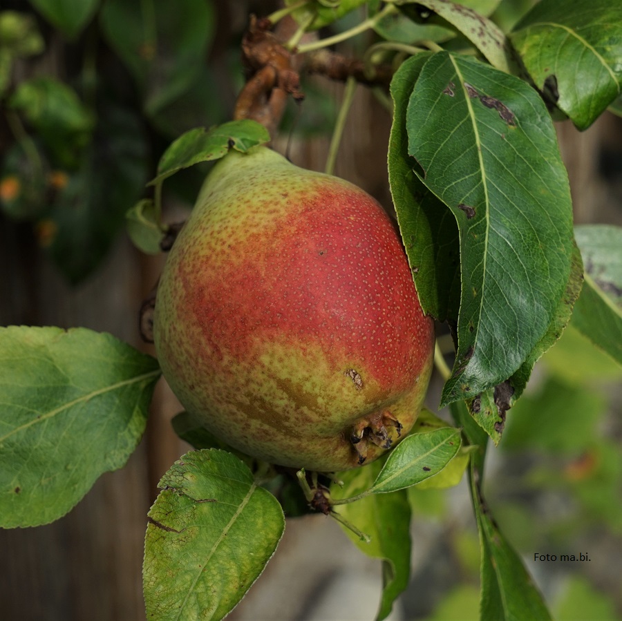 Bei den Birnen nimmt „Clapps Liebling“ schon Farbe an. Der Baum trägt gut, obwohl er stark von Birnenpocken-Milben befallen ist. Habt ihr ein Rezept dagegen? 22. 08. 2020