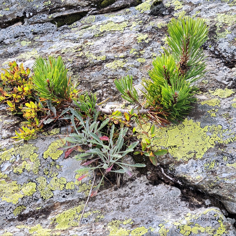 Das Barbarakraut (Barbarea vulgaris) kenne ich aus dem Küchengarten. Ist es mit dem Wegebau in die Höhe gekommen? Oder liege ich mit der Bestimmung ganz falsch? Immer wieder faszinierend finde ich es, wenn sich Pflanzen aus den kleinsten Felsritzen zwängen. Und die Landkartenflechte hat auch ihren Reiz. 16. 09. 2022