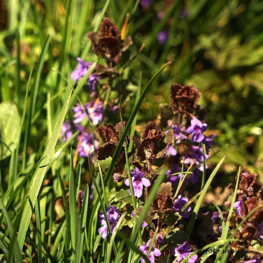 Die letzten beiden wachsen am lichten Waldweg gegenüber, die Unterschiede bei Blütenfarbe und Sporn sind mir erst auf den Fotos aufgefallen. Auch Buschwindröschen (Anemone nemorosa) und Scharbockskraut (Ranunculus ficaria) stehen in voller Blüte, ebenso wie der Gundermann (Glechoma hederacea).